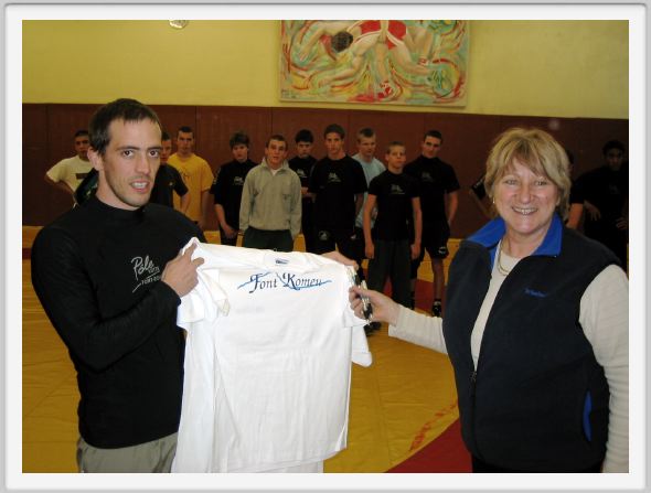 Anne Marie Agel remet les tee-shirts de Font-Romeu.
