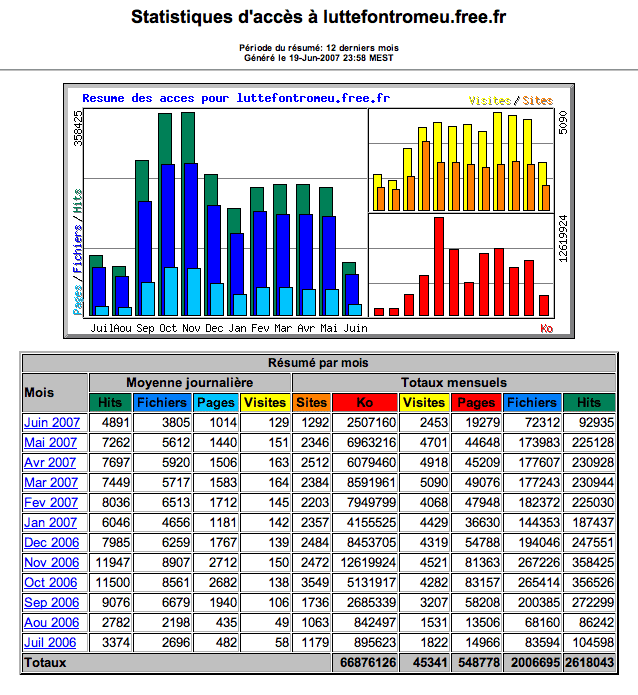 45341 visites entre le mois de juillet 2006 et le mois de juin 2007. Plus de
